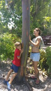 A la mañana del tercer día nos dirigimos a la que se supone es una de las mejores playas de los Cayos: Anne’s Beach. Por desgracia encontramos la playa cubierta de algas y no pudimos disfrutarla. Seguimos nuestra ruta hacia el norte atiborrándonos en Mrs Mac’s Kitchen, un restaurante decorado estrafalariamente donde comimos nuestro primer Lemon Pie y y descubrimos el eucalipto arcoiris (o un primo hermano) que tenía el tronco de tonos verdes y anaranjados.