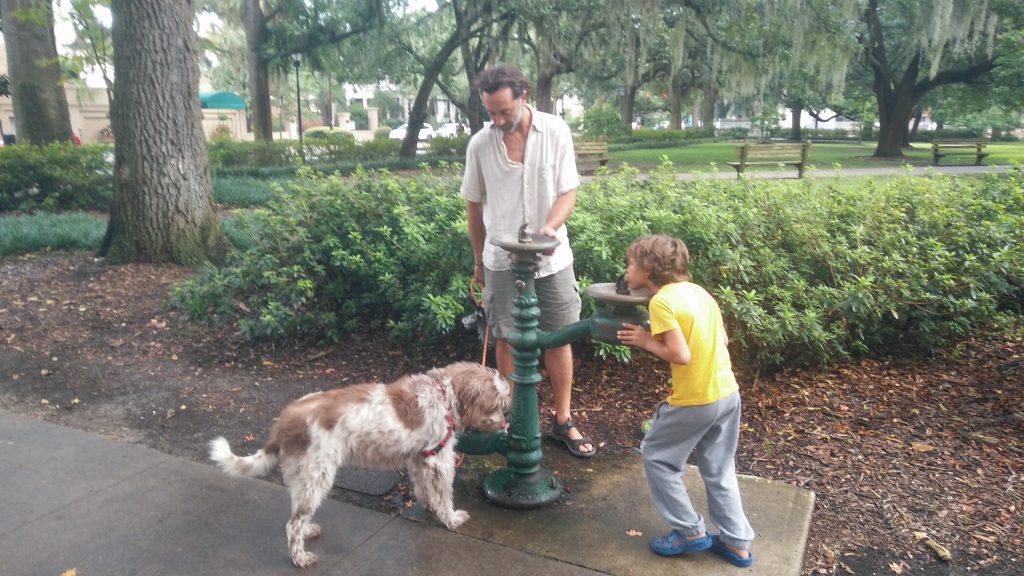 Nos encantó ver que —además de entretenimientos caninos gratuitos— Forsyth Park contaba con fuentes que permitían beber no solo a las personas, sino también a las mascotas.