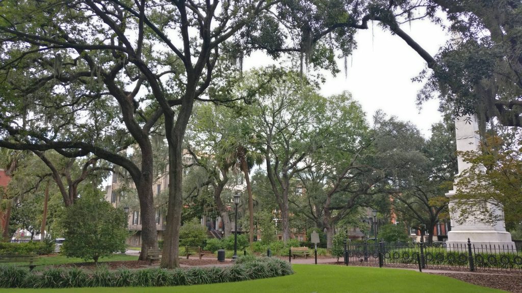 Nos dimos un paseo por el extenso Forsyth Parl (mapa), un parque que abarca varias manzanas de la ciudad rodeado de edificios de arquitectura artebellum, iglesias y otros edificios públicos. Además cuenta con frondosos árboles y amplias extensiones de cesped.