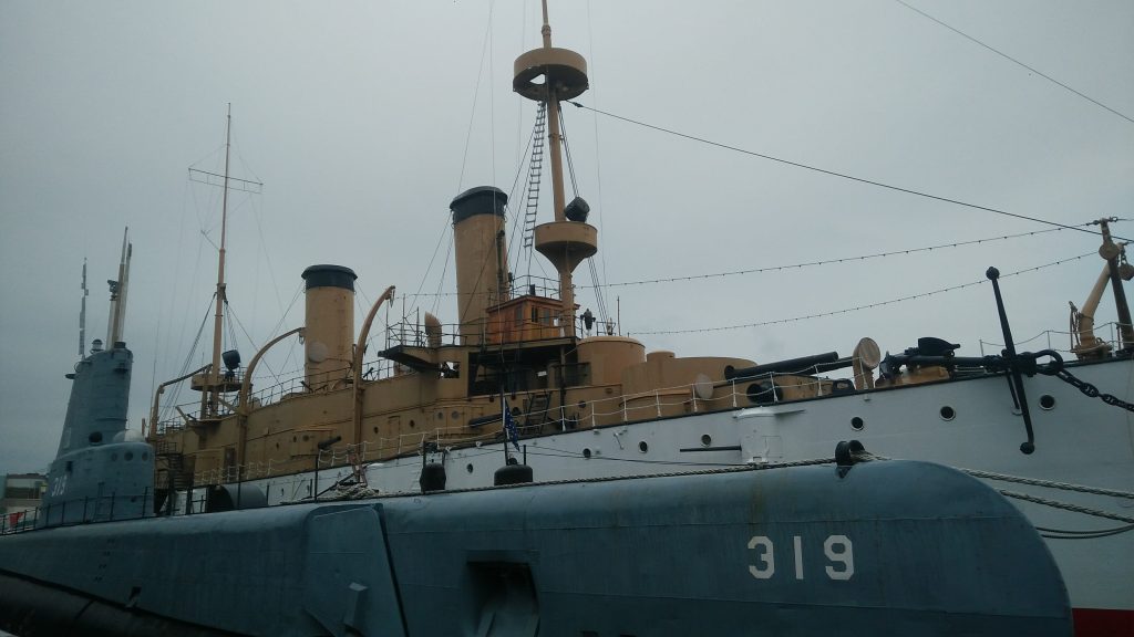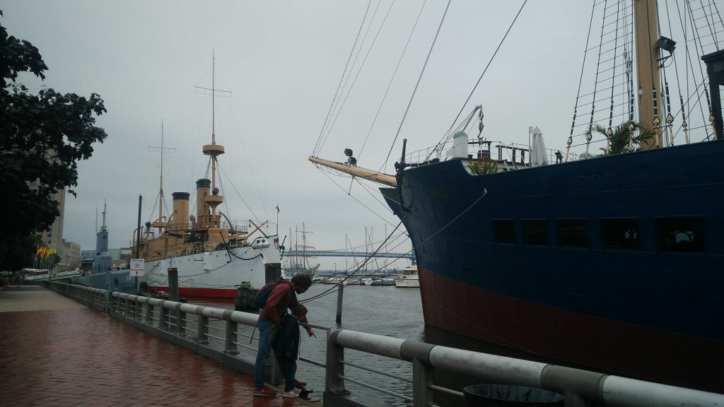 Nuestro paseo comenzó a orillas del río Delaware, donde se pueden visitar el barco de guerra con el que los americanos dieron para el pelo a los españoles en la guerra de Filipinas y uno de los primeros submarinos del ejército americano.