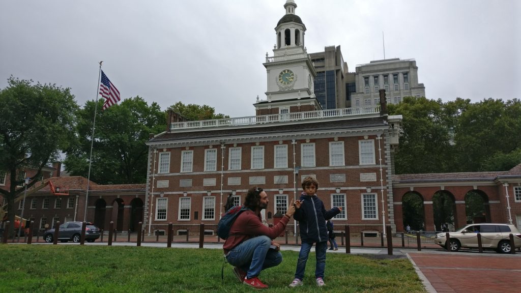 Nos adentramos en la Old City, evitando las trampillas sobre la acera tan peculiares de las casas antiguas y preguntándonos qué habría en todos esos sótanos. Lo más interesante fue la visita al Independence Hall. En esta sencilla casa se firmó la Declaración de Independencia de 1776, que impulsó la creación del que hoy es el país más influyente del mundo. Hay visitas guiadas gratuitas, en las que te cuentan un poco de ese acontecimiento histórico en mismos escaños donde se sentaron en su día los padres de la patria americana. Las estancias siguen tal cual fueron en su día. Muy recomendable si te gusta la historia.