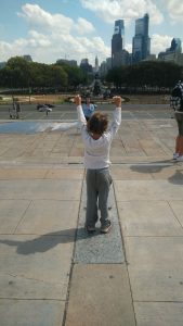 Después caminamos hasta el emblemático Museo de Arte de Philadelphia. Nos quedamos con ganas de visitarlo por falta de tiempo, ya que queríamos llegar esa misma tarde a Nueva York. Lo que sí hicimos fue repetir los pasos de Rocky Balboa: ¡Nahuel replicó la famosa carrera sobre las escaleras del museo!
