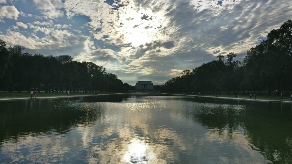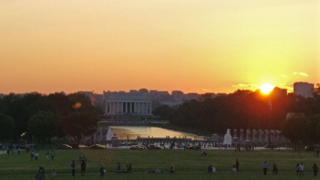 En medio del Mall apunta hacia el cielo el obelisco del Washington Monument, cuyo ascensor encontramos en obras —se podrá volver a subir en 2019— y desde el que se ve un precioso atardecer.